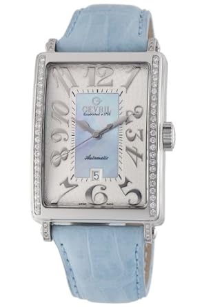 Breathtaking in its luxe beauty, the Gevril Women's Glamour Automatic Blue Diamond Watch #6207NE features 62 genuine CNC-machined Wesselton diamonds on its silver-tone stainless steel case for sparkle and shine. An icy blue and silver dial has silver-tone hands and Arabic numerals, date display at six o'clock, and black and silver indices for easy time-reading. Boasting the convenience of battery-free automatic movement--to power the watch, simply move your arm--and a robin's egg blue leather strap for a pop of color, this gorgeous timepiece makes a statement without over-powering your ensembles. Water resistant to 150 feet (40 meters), it arrives in an elegant brown box perfect for storage or gift-giving.